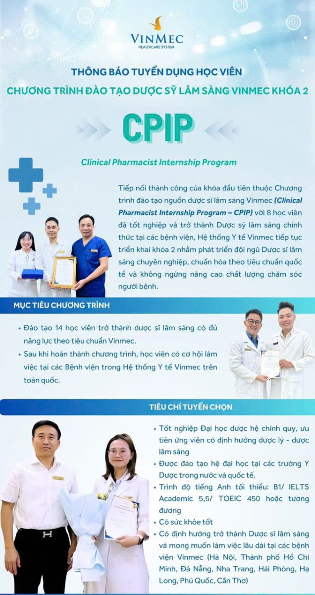 CHƯƠNG TRÌNH ĐÀO TẠO DƯỢC SĨ LÂM SÀNG NGUỒN (CPIP)- KHÓA II- HỆ THỐNG VINMEC