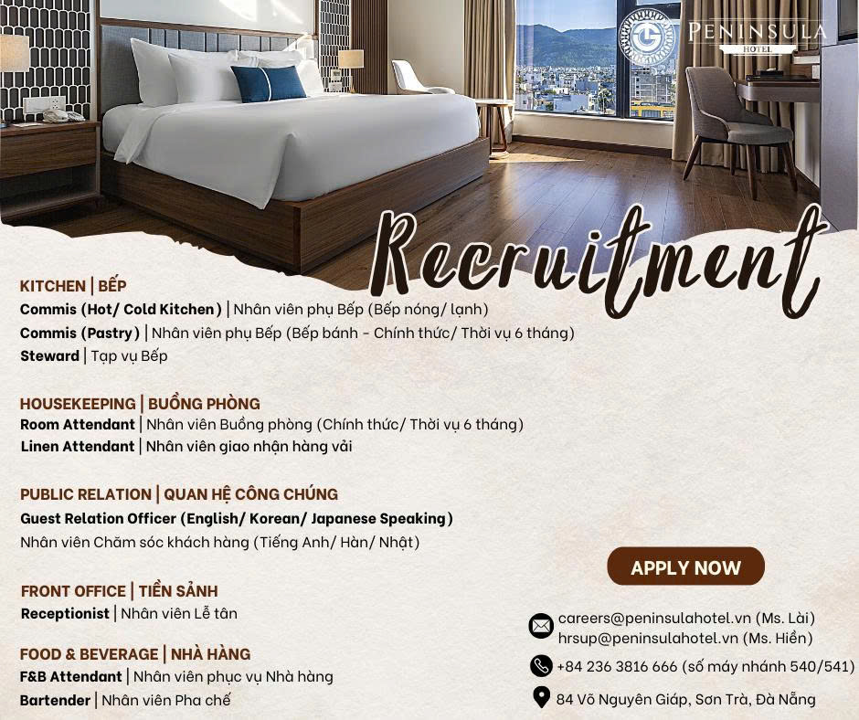 KHÁCH SẠN PENINSULA ĐÀ NẴNG TUYỂN DỤNG NHIỀU VỊ TRÍ